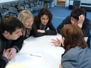 St. Petersburg, im Januar 2010 - Im zweiten Stock des Deutsch-Russischen Begegnungszentrums geht es fidel zu – Nadeschda Schischkina aus Astrachan führt Schwänke und Sprichwörter in deutschen Dialekten vor. Im Kurs “Deutsche Dialekte im Rahmen der Jugendspracharbeit” wird die Vielfalt und die Geschichte der Sprache im russlanddeutschen Kulturraum behandelt. Es wird viel gelacht – besonders als Schischkina ein deftiges bayrisches Hochzeitslied vorträgt.