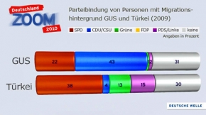 Berlin, im Mai 2010 - Obwohl die Russlanddeutschen weiterhin eine recht stabile Vorliebe für die christdemokratischen Parteien (siehe Tabellen) zeigen, neigt unter ihnen eine wachsende Minderheit der SPD zu. Bei den Türkeistämmigen hat sich dagegen seit 2002 keine größere Nähe zur CDU entwickelt, sagt Wüst aufgrund eigener Untersuchungen, in die auch Daten eingeflossen sind, die das Zweite Deutsche Fernsehen erhoben hat.