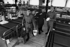 Putzdienst in einem Schlafsaal der Berlin-Brigade, Berlin-Karlshorst, September 1992