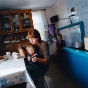 Stefan Volk: Rückblick - Lena mit ihrer dreijährigen Nichte Lilja in der Winterküche ihres Elternhauses. Slawgorod, 2003