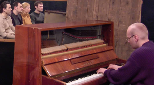 "Teatr 05": am Klavier Dimitri Bratukhin, dahinter von links nach rechts: Sergej Sobolew, Eugen Gerain, Julia Savina und Andrej Sidelnikow